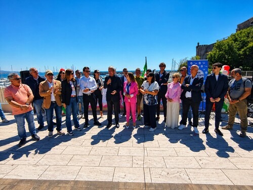 L’evento ha segnato l’apertura della campagna elettorale, in una location straordinaria: la terrazza del porticciolo turistico della città, baciata da un sole quasi estivo e impreziosita da una vista mozzafiato sul mare.