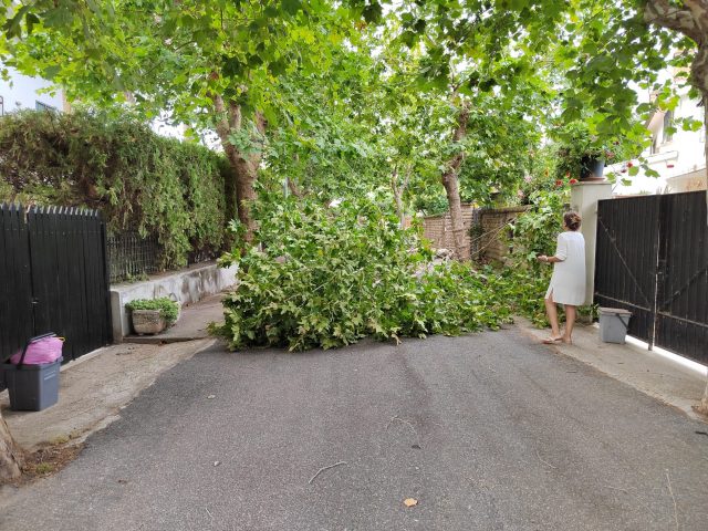 Ma il vento sembra non aver causato danni soltanto lungo il mare; altri cittadini hanno pubblicato immagini che ritraggono un grande ramo spezzato, proprio in prossimità di alcune abitazioni in Via Conti Galeria.