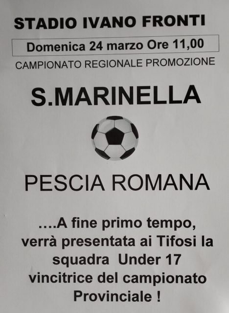 Proprio a questo proposito, questa mattina in occasione della gara Santa Marinella -Pescia Romana, nell’intervallo verrà presentata ai tifosi la squadra Under 17 che a diverse giornate dal termine ha matematicamente vinto il campionato allievi provinciali.