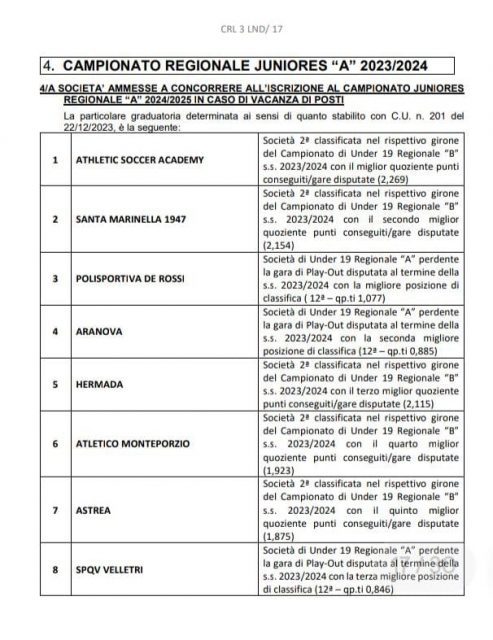 Sarebbe il giusto riconoscimento, oltre che sportivo conquistato sul campo, anche per una Società che grazie ai tanti sacrifici di un nucleo di appassionati sta tornando nelle alte sfere del calcio laziale.