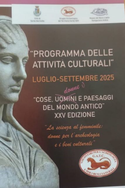 Accanto alla programmazione estiva, prosegue anche il ciclo di conferenze “Cose, Donne e Paesaggi del Mondo Antico”, a cura del Polo Museale Civico di Santa Marinella in collaborazione con GATC e Coopculture.