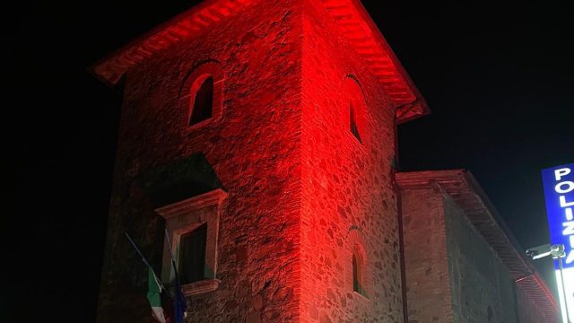 La sede della Polizia locale si illumina di rosso, colore simbolo dell’organizzazione che conta più di 150.000 volontari