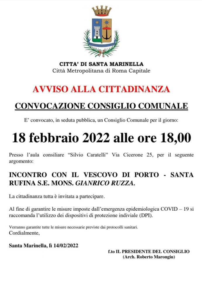 È per questo che anche nella mia veste istituzionale di primo cittadino di Santa Marinella, ho ritenuto doveroso convocare per venerdì prossimo, 18 febbraio, un consiglio comunale pubblico che rappresenterà anche una occasione di incontro e confronto e conoscenza con il Vescovo Ruzza.