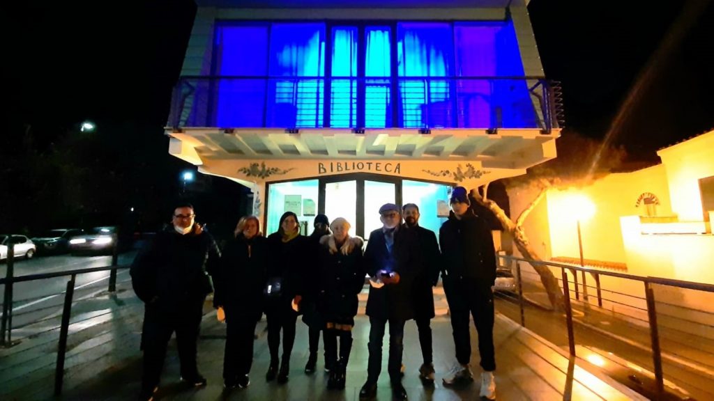 In particolare, dopo l’illuminazione della biblioteca, è stato possibile realizzare un breve collegamento con Kiev, una video call, grazie all’assessore D’Emilio, resosi subito disponibile.