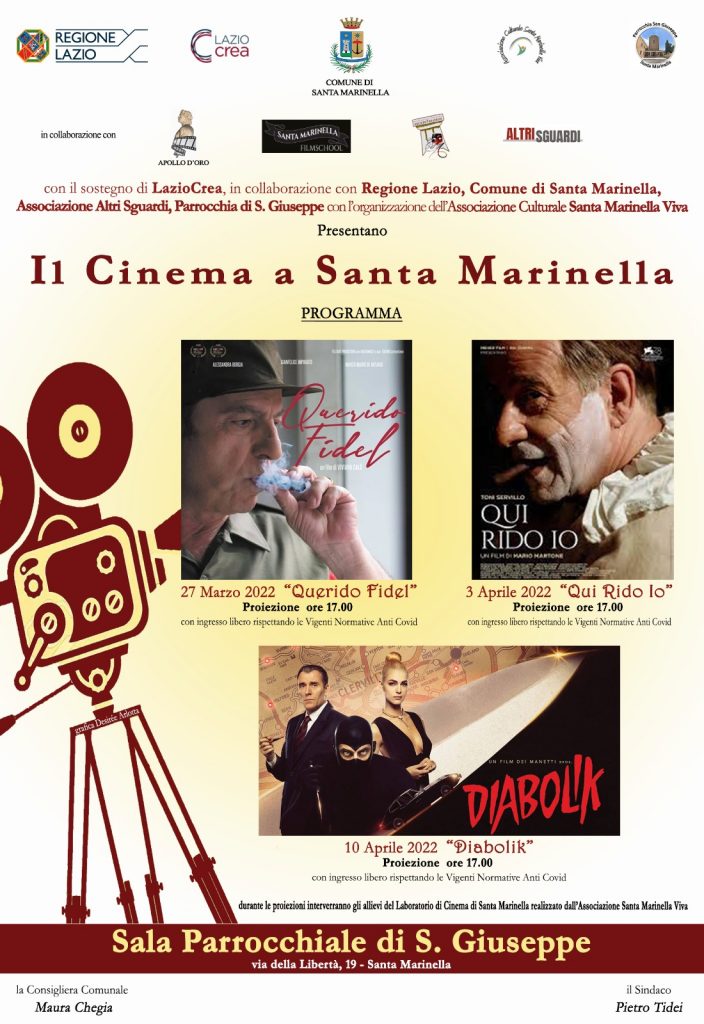 “A Santa Marinella arriva il Cinema gratuito per tre domeniche consecutive, si parte il 27 marzo 2022” lo annuncia il Sindaco Pietro Tidei.