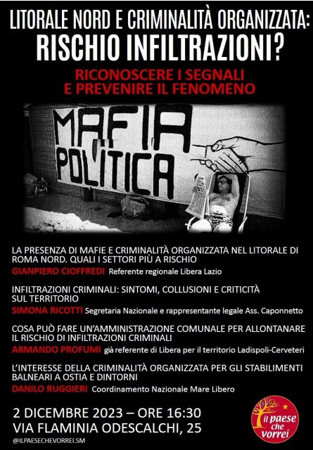 <<Nel litorale a Nord di Roma, la mafia c’è. E’ questa la verità che è emersa nella conferenza organizzata da Il Paese che Vorrei il 2 dicembre sulla criminalità organizzata.