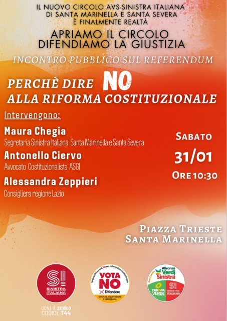 Sabato 31 gennaio alle ore 10.30, in piazza Trieste, il circolo organizza un’iniziativa pubblica dedicata al referendum costituzionale sulla giustizia.