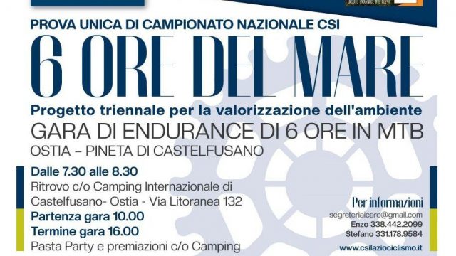 Allo stato attuale la Mtb Santa Marinella è impegnata nel mettere in cantiere la Sei Ore del Mare ad Ostia, in programma domenica 22 ottobre all’interno della pineta di Castelfusano con il patrocinio del X Municipio di Roma Capitale.