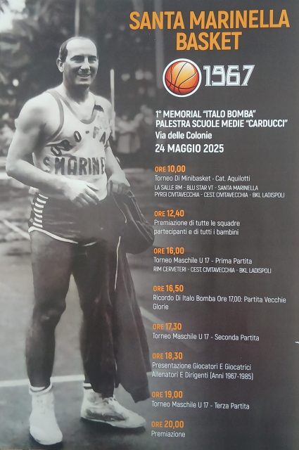 Sabato 24 maggio 2025 sarà una giornata speciale per la comunità sportiva di Santa Marinella: vecchi giocatori, allenatori e dirigenti del Basket Santa Marinella si ritroveranno nella palestra della Scuola Media Statale Giosuè Carducci per rendere omaggio a una figura storica della pallacanestro locale, Italo Bomba, scomparso lo scorso anno.