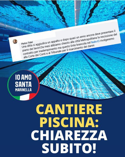 <<Le ultime dichiarazioni del Sindaco Tidei sui social confermano quello che temevamo da tempo: il cantiere della piscina comunale rischia di trasformarsi nell’ennesima incompiuta della città.