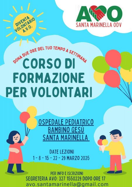 “Dona due ore del tuo tempo”. Con questo slogan ripartono a Santa Marinella, presso i locali della biblioteca dell’Ospedale in via Beato Giacomo Cusmano 1, i corsi per volontari AVO.