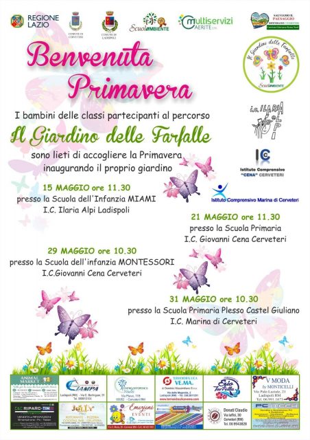 Sono quattro, infatti, gli Istituti coinvolte nel progetto “Il Giardino delle Farfalle” che ha visto protagonisti i bambini della Scuola per l’infanzia Miami dell’Ilaria Alpi di Ladispoli, la scuola Primaria e la Primaria Montessori dell’ IC Giovanni Cena di Cerveteri la scuola Primaria del plesso di Castel Giuliano dell’IC Marina di Cerveteri.
