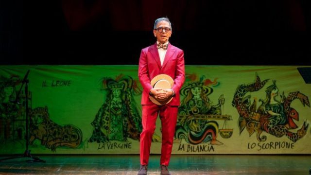 con il suo omaggio al grande artista Paolo Poli in “Sempre fiori mai un fioraio” al Teatro Vittoria di