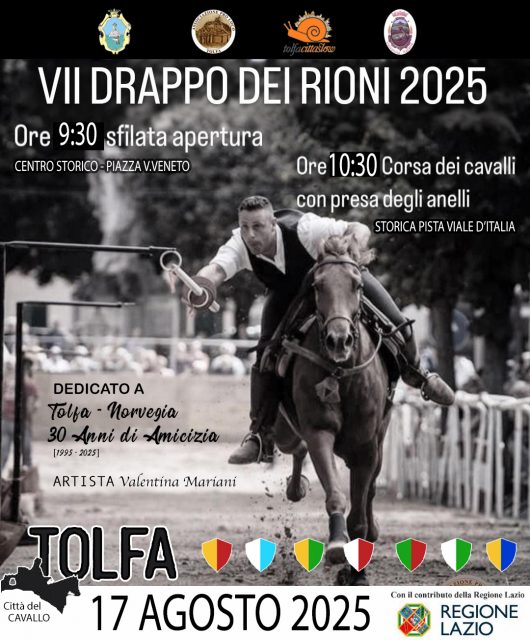 Tolfa Città Slow e Tolfa Città del Cavallo, vedrà sfidarsi i sette rioni storici del paese: