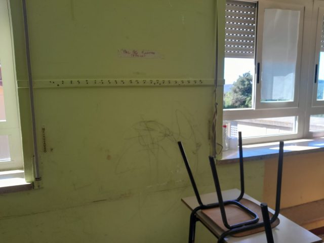 Le aule sono caratterizzate da mura sporche, tapparelle rotte, parti superiori delle finestre tappate alla buona dell’ingegno delle insegnanti, aule in cui piove e in cui la muffa ha lasciato i segni, corrugati scoperti e in bella vista.