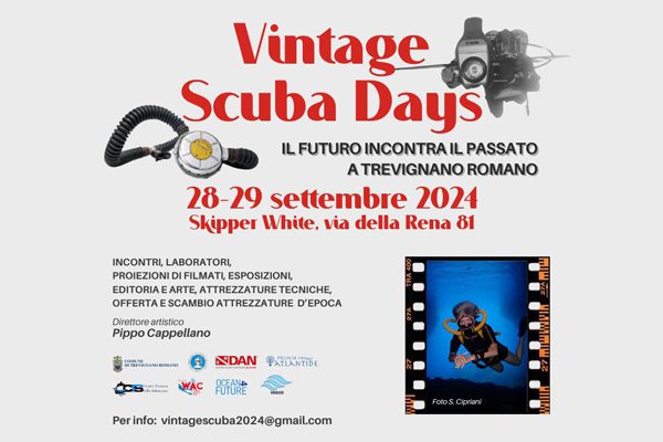 Vintage Scuba Days è realizzato con il Patrocinio del Comune di Trevignano Romano, di DAN – Divers Alert Network, HDS – Historical Diving Society Italia e del Premio Atlantide e con la collaborazione di CTS – Centro Tecnico della Subacquea, WAC – World Activity Com, Stefanelli Edilizia, Ireco e Ocean4Future.
