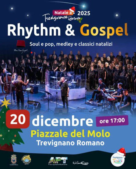 Un appuntamento inedito per il Natale sul lago. Sabato 20 dicembre 2025, alle ore 17:00, il Piazzale del Molo ospiterà il concerto Rhythm & Gospel, per la prima volta a Trevignano Romano.